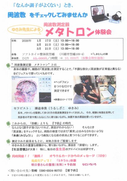会場 ソフトカイロ整体院笠幡 (川越市笠幡109-4 シマムラの隣)